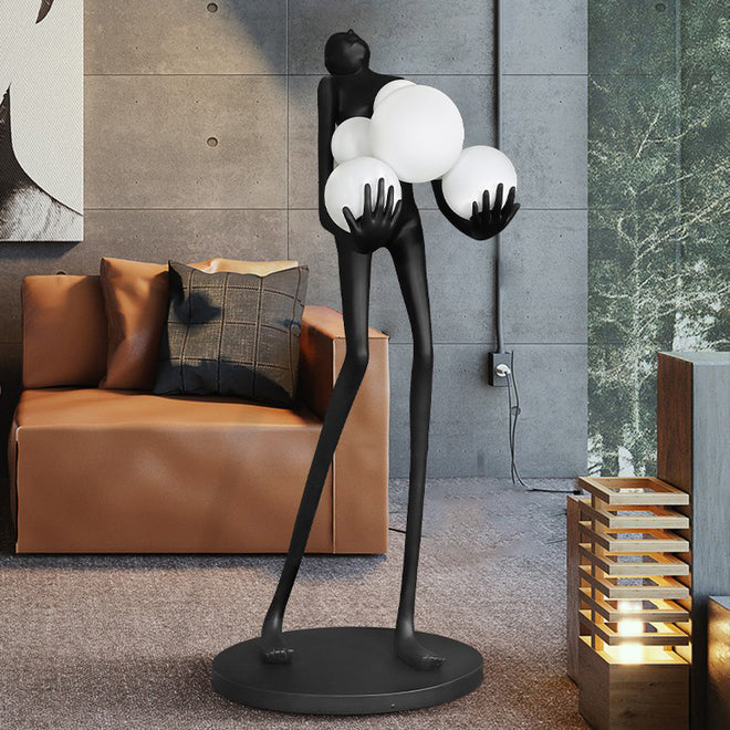 A stunning human body shaped standing lamp with an unusual abstract design.