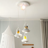 This pendant light features dogs in alien ships, colorful stars and more in a cute design for children. Choose from 3 available variants to fit your room. The chandeliers are perfectly designed with attention to each detail: the base part is made of iron and the dog and other small parts are made of resin.
