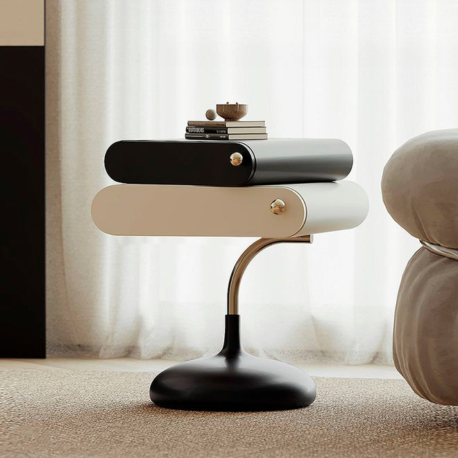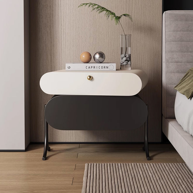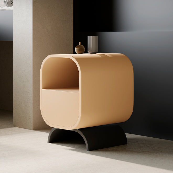 Standing gracefully at the intersection of beige and black hues, this nightstand exudes sophistication and versatility.