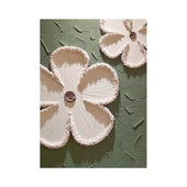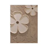 Each piece in the series is crafted on a cotton and linen canvas using acrylic paints to create textured, three-dimensional floral designs that pop against their backgrounds. This collection is available in three distinct color options, each set against a differently hued canvas to complement various decor styles and personal tastes.